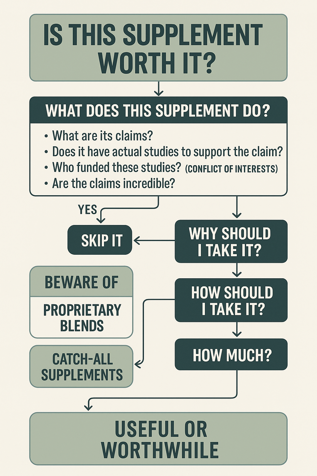 A supplement is worthwhile only if it supports a specific goal or addresses a real deficiency.